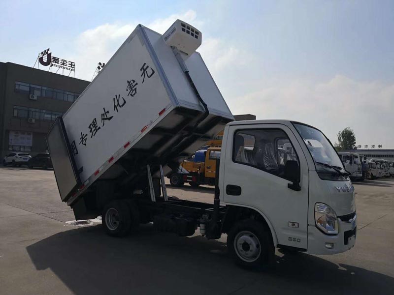 无害化处理车是冷藏车中的一种,对厢体的密封性要求极为严格,同时也具备消毒功能和衡温功能,在运输过程中对病毒进行控制。