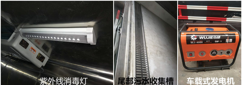 残夜收集系统:避免残夜外流,并且方便处理车内残留的污水,同时保证了车内的干净整洁,改善工作人员的工作环境,有效避免运输途径的病菌传播和污染。