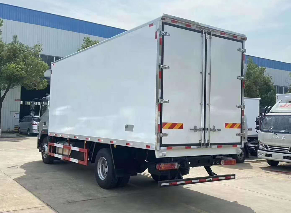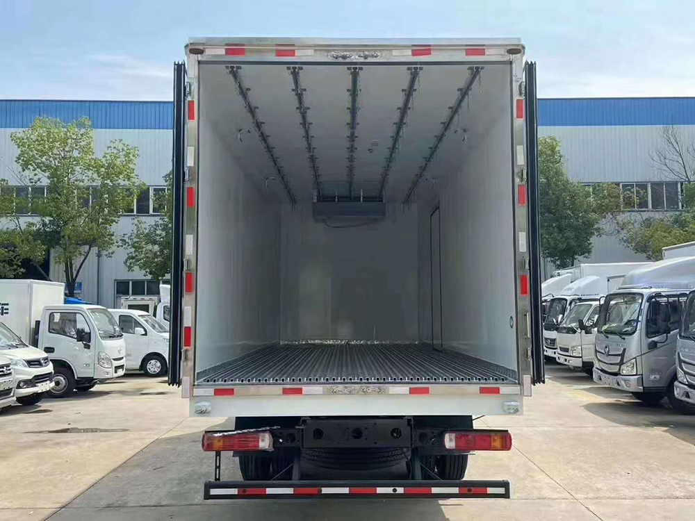 三、选装配置:可选装厢体侧门(单侧门或双开门),可选装铝合金导风槽(导风槽有助于冷气循环,提升制冷效果),可选装厢体顶部加固肉勾滑道(直滑道 或 对接互通式拐弯滑道)。可选装厢体内部采用全面不锈钢材质(海鲜运输必须加装,海水有腐蚀性),可选装280V-380V外接电源(停车熄火后可插电冷机继续制冷工作),可选装温湿度监控记录仪(带打印功能)。