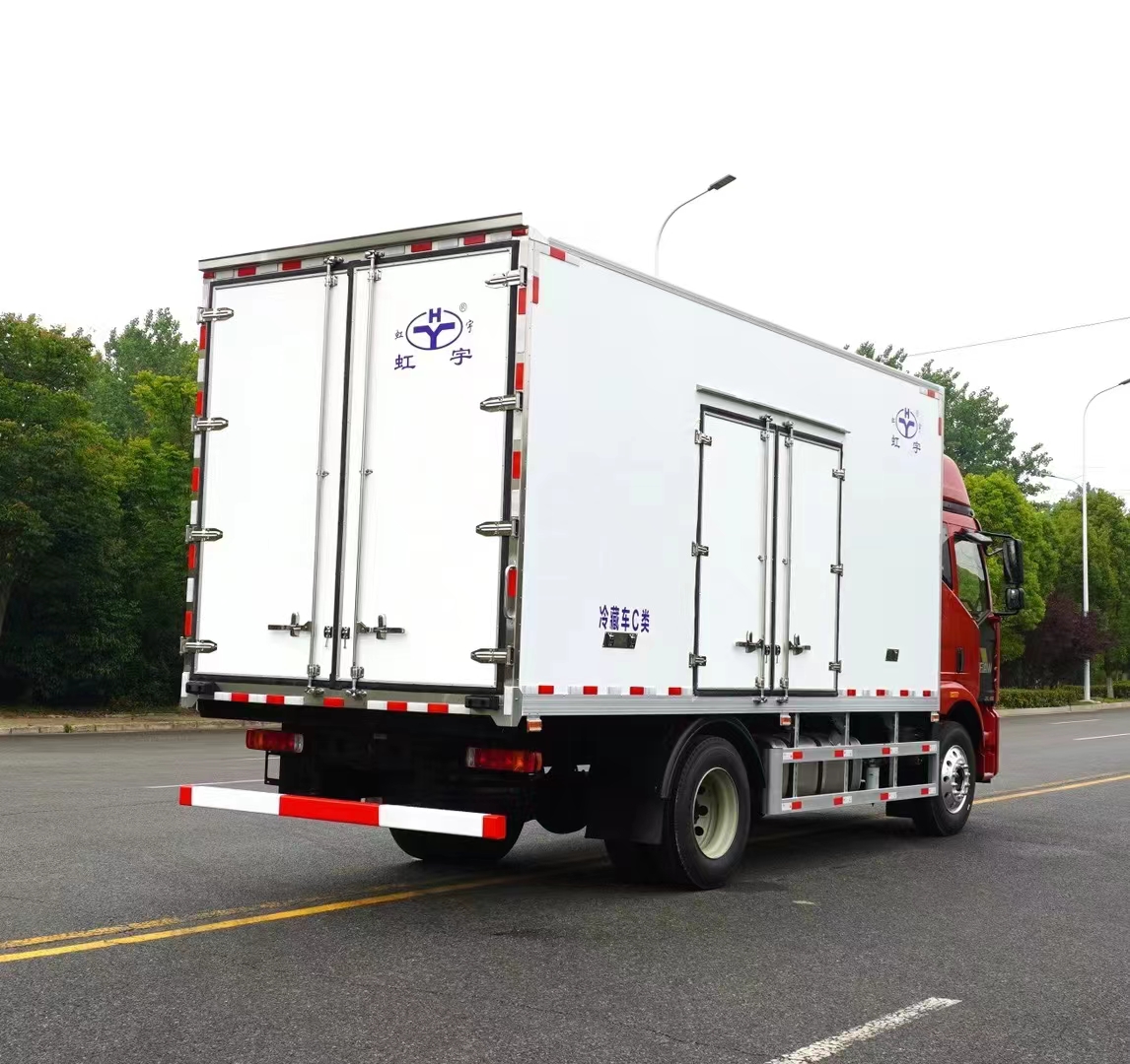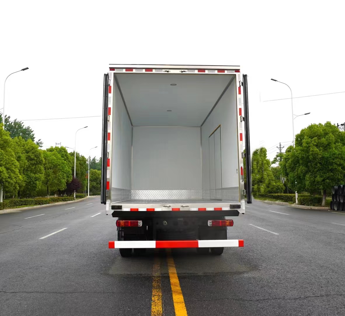 三、选装配置:可选装厢体侧门(单侧门或双开门),可选装铝合金导风槽(导风槽有助于冷气循环,提升制冷效果),可选装厢体顶部加固肉勾滑道(直滑道 或 对接互通式拐弯滑道)。可选装厢体内部采用全面不锈钢材质(海鲜运输必须加装,海水有腐蚀性),可选装280V-380V外接电源(停车熄火后可插电冷机继续制冷工作),可选装温湿度监控记录仪(带打印功能)。