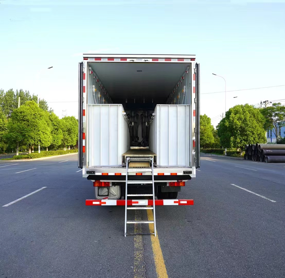 三、选装配置:可选装厢体侧门(单侧门或双开门),可选装铝合金导风槽(导风槽有助于冷气循环,提升制冷效果),可选装厢体顶部加固肉勾滑道(直滑道 或 对接互通式拐弯滑道)。可选装厢体内部采用全面不锈钢材质(海鲜运输必须加装,海水有腐蚀性),可选装280V-380V外接电源(停车熄火后可插电冷机继续制冷工作),可选装温湿度监控记录仪(带打印功能)。