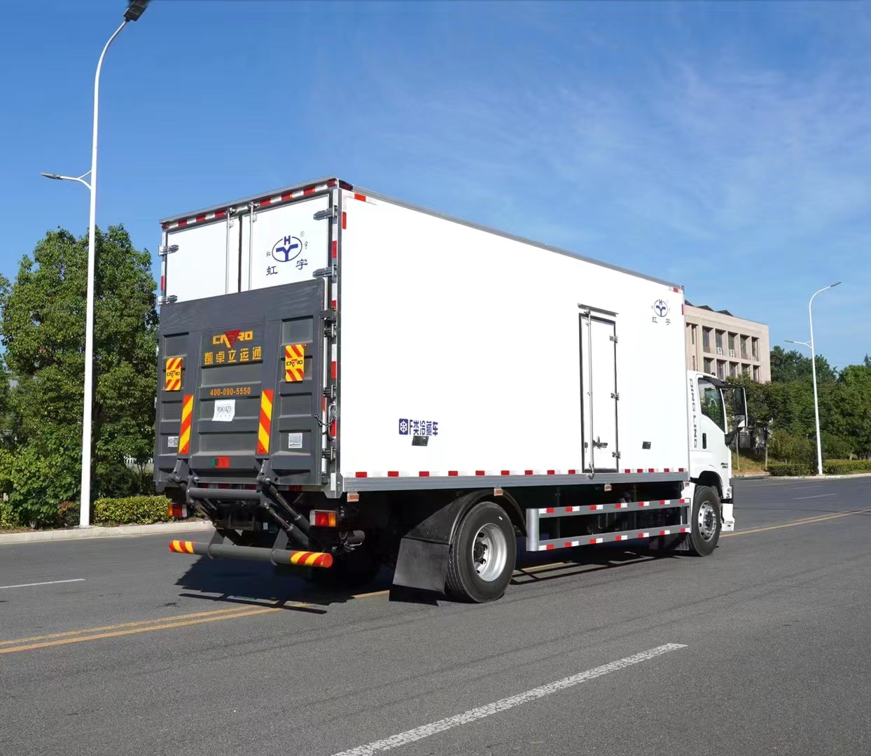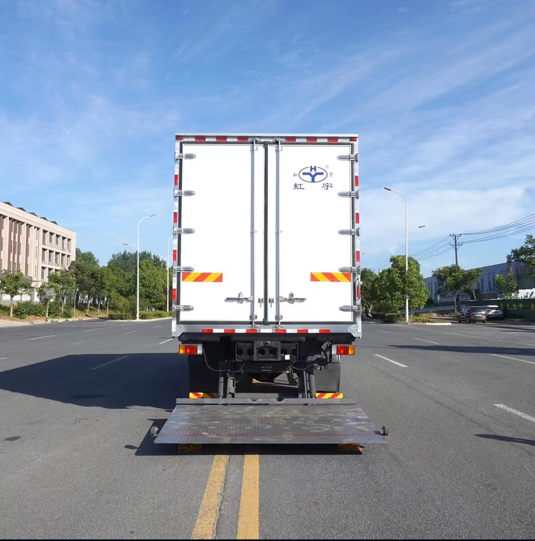 三、选装配置:可选装厢体侧门(单侧门或双开门),可选装铝合金导风槽(导风槽有助于冷气循环,提升制冷效果),可选装厢体顶部加固肉勾滑道(直滑道 或 对接互通式拐弯滑道)。可选装厢体内部采用全面不锈钢材质(海鲜运输必须加装,海水有腐蚀性),可选装280V-380V外接电源(停车熄火后可插电冷机继续制冷工作),可选装温湿度监控记录仪(带打印功能)。