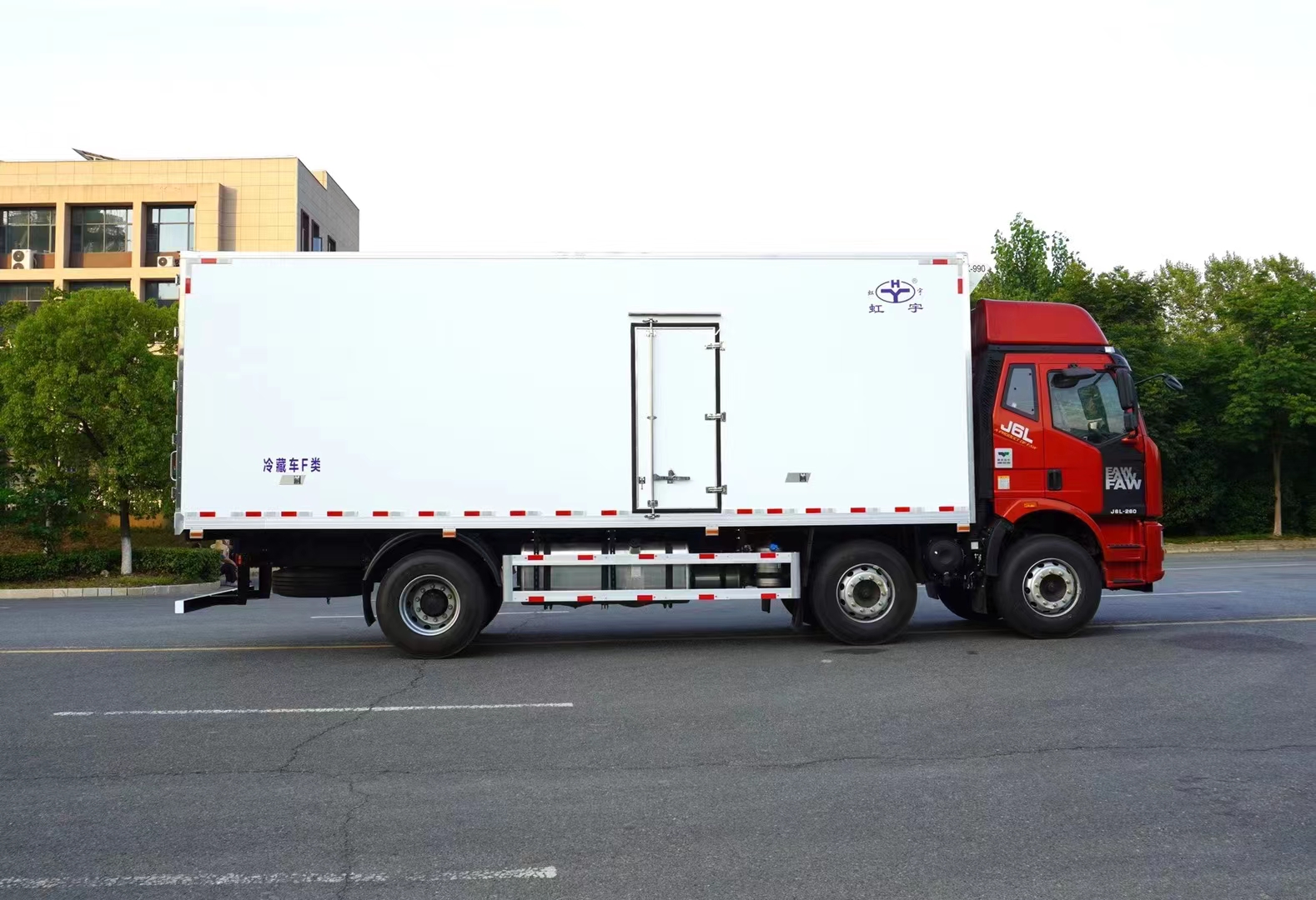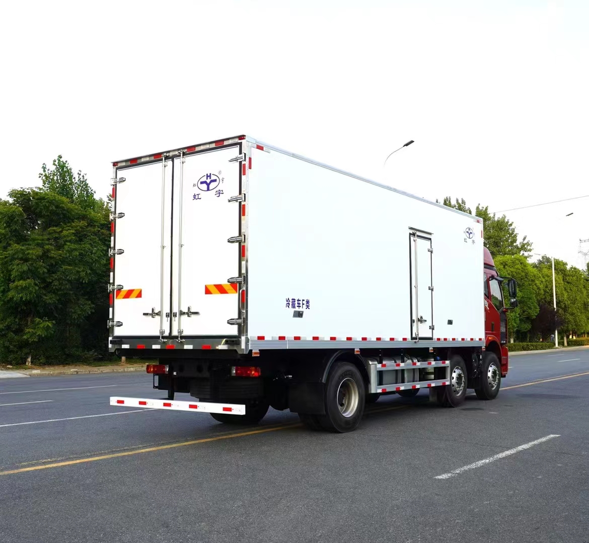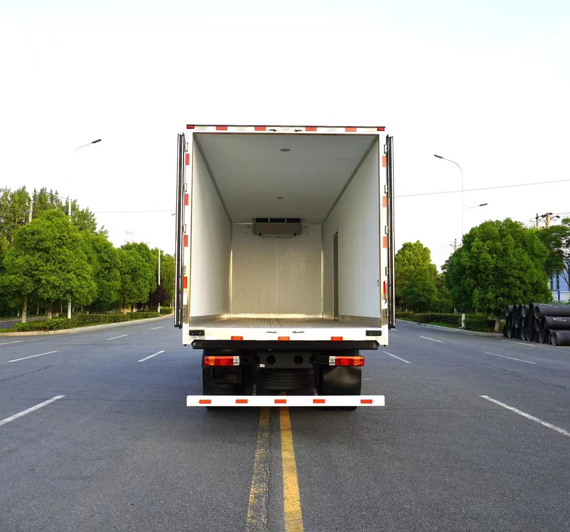 三、选装配置:可选装厢体侧门(单侧门或双开门),可选装铝合金导风槽(导风槽有助于冷气循环,提升制冷效果),可选装厢体顶部加固肉勾滑道(直滑道 或 对接互通式拐弯滑道)。可选装厢体内部采用全面不锈钢材质(海鲜运输必须加装,海水有腐蚀性),可选装280V-380V外接电源(停车熄火后可插电冷机继续制冷工作),可选装温湿度监控记录仪(带打印功能)。