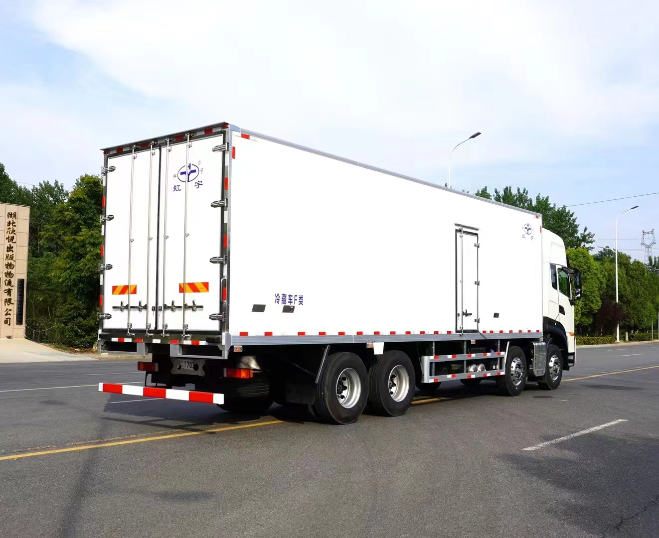三、选装配置:可选装厢体侧门(单侧门或双开门),可选装铝合金导风槽(导风槽有助于冷气循环,提升制冷效果),可选装厢体顶部加固肉勾滑道(直滑道 或 对接互通式拐弯滑道)。可选装厢体内部采用全面不锈钢材质(海鲜运输必须加装,海水有腐蚀性),可选装280V-380V外接电源(停车熄火后可插电冷机继续制冷工作),可选装温湿度监控记录仪(带打印功能)。