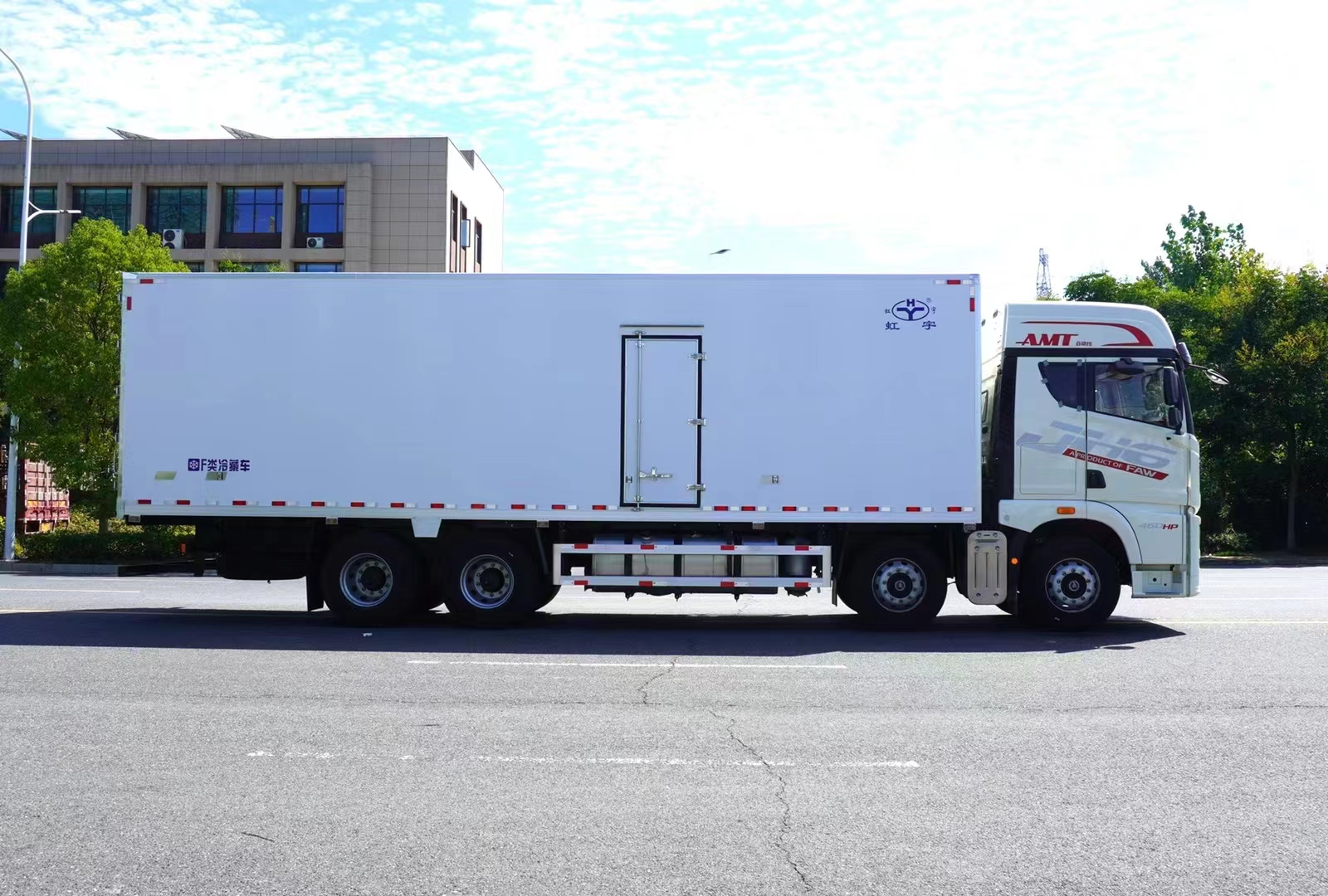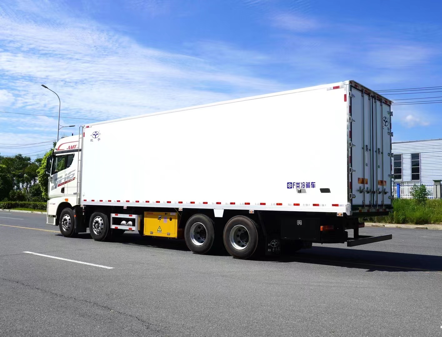 三、选装配置:可选装厢体侧门(单侧门或双开门),可选装铝合金导风槽(导风槽有助于冷气循环,提升制冷效果),可选装厢体顶部加固肉勾滑道(直滑道 或 对接互通式拐弯滑道)。可选装厢体内部采用全面不锈钢材质(海鲜运输必须加装,海水有腐蚀性),可选装280V-380V外接电源(停车熄火后可插电冷机继续制冷工作),可选装温湿度监控记录仪(带打印功能)。