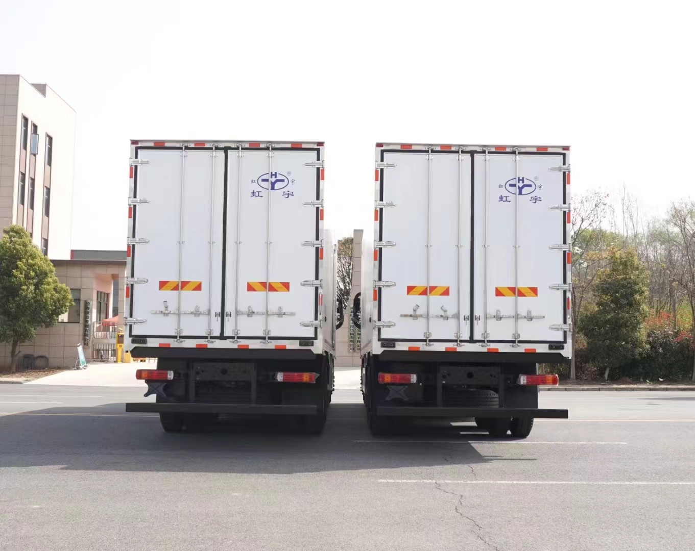 三、选装配置:可选装厢体侧门(单侧门或双开门),可选装铝合金导风槽(导风槽有助于冷气循环,提升制冷效果),可选装厢体顶部加固肉勾滑道(直滑道 或 对接互通式拐弯滑道)。可选装厢体内部采用全面不锈钢材质(海鲜运输必须加装,海水有腐蚀性),可选装280V-380V外接电源(停车熄火后可插电冷机继续制冷工作),可选装温湿度监控记录仪(带打印功能)。