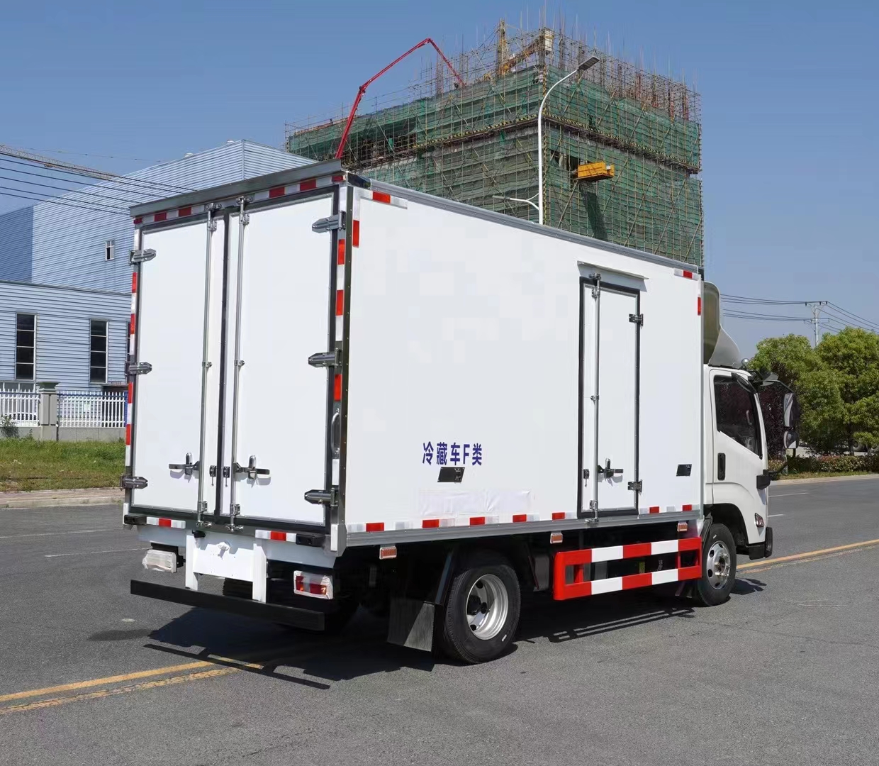 三、选装配置:可选装厢体侧门(单侧门或双开门),可选装铝合金导风槽(导风槽有助于冷气循环,提升制冷效果),可选装厢体顶部加固肉勾滑道(直滑道 或 对接互通式拐弯滑道)。可选装厢体内部采用全面不锈钢材质(海鲜运输必须加装,海水有腐蚀性),可选装280V-380V外接电源(停车熄火后可插电冷机继续制冷工作),可选装温湿度监控记录仪(带打印功能)。