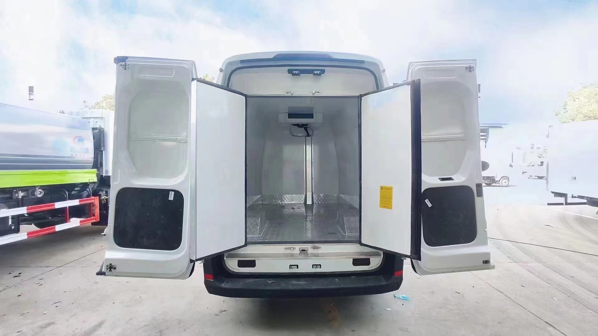 三、选装配置:可选装厢体侧门(单侧门或双开门),可选装铝合金导风槽(导风槽有助于冷气循环,提升制冷效果),可选装厢体顶部加固肉勾滑道(直滑道 或 对接互通式拐弯滑道)。可选装厢体内部采用全面不锈钢材质(海鲜运输必须加装,海水有腐蚀性),可选装280V-380V外接电源(停车熄火后可插电冷机继续制冷工作),可选装温湿度监控记录仪(带打印功能)。
