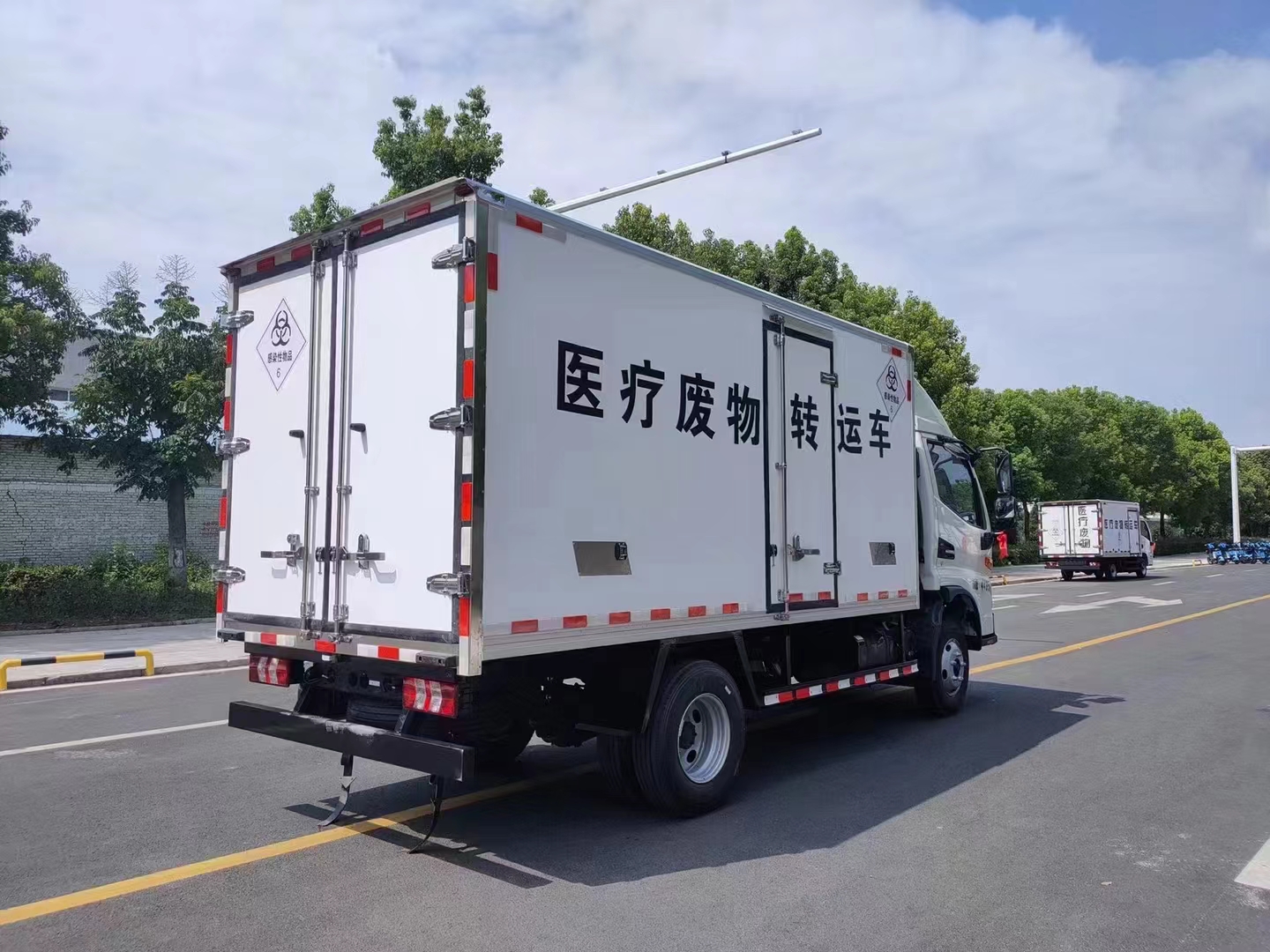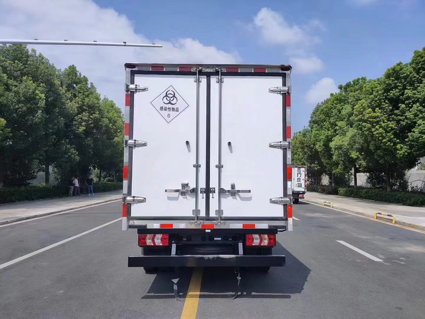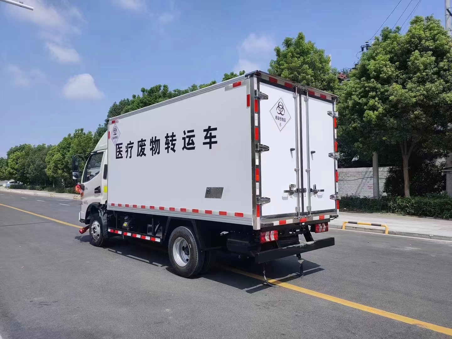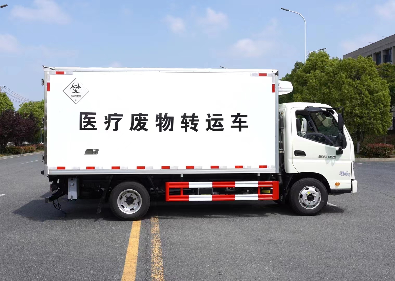 首页 > 专用冷藏车系列 > 医疗废物转运车 江淮骏铃V5医疗废物转运车 底盘型号: HFC5045XYYP32K5C7ZS 排放标准: 国六 额定质量: 1500 微信在线咨询 咨询电话:13277226111 销售经理:13277226111(曾经理)在线QQ 整车图库 产品详细参数 国六江淮骏铃V5医疗废物转运车 整车型号:HFC5045XYYP32K5C7ZS 整车尺寸:5995*1995*2800(mm) 货箱尺寸:4030*1870*1750(mm) 功率/马力:96KW/130马力 2289ml排量,潍柴发动机(WP2.3NQ130E61) 底盘配置:骏铃V5中体驾驶室,6档变速箱,7.00钢丝胎,空调,方向助力,断气刹,中控锁,电动车窗,ABS,电动加热后视镜。 上装配置:厢体外蒙皮白色玻璃钢,内蒙皮不锈钢,后双开门,右侧单侧门,选装后内掀门(选装)。厢内安装紫外线消毒灯,喷雾消毒装置,厢体外置废液收集箱,安装-5或-15℃制冷机组。
