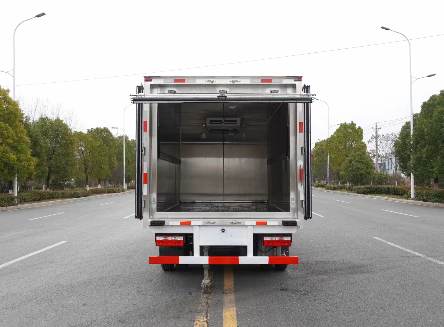 改装要求:厢体采用内不锈钢外玻璃钢制作,冷链专用保温板,厢体右侧前开单侧门,紫外线、喷雾消毒,双层门,厢体两侧加装防撞板,厢体密封无泄漏,铝合金型材包边,门框、锁件为不锈钢,装配零下5度制冷机组,其余标配。
