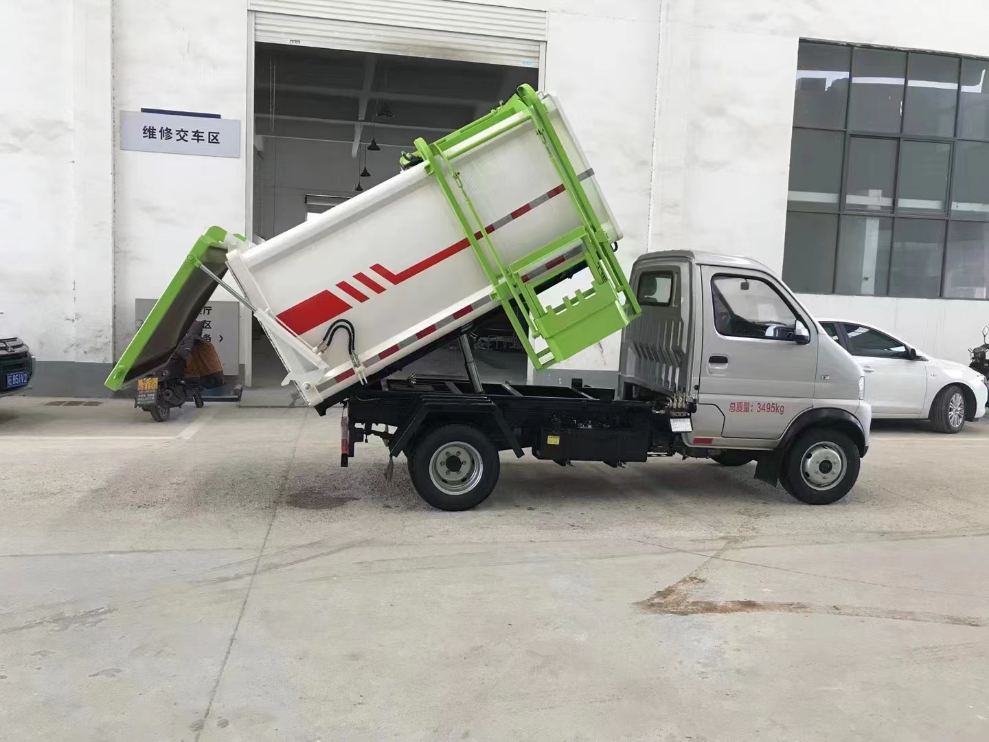 上装主要配置:箱体采用Q235碳钢板焊接而成,箱体边三底三,手动多路阀,箱体底部油缸举升自卸,侧面提升机可选链条式、拉杆式机构,侧面可挂120升或240升标配塑料垃圾桶,液压尾门,整车一次工作循环时间小于等于30S,非常适用于城市街道和狭窄小区内部的垃圾桶内垃圾收集工作。