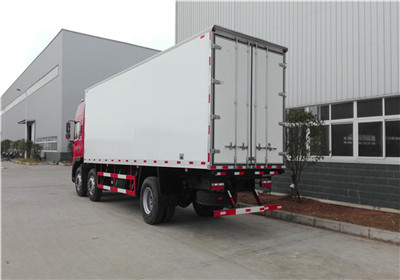 江淮格尔发小三轴冷藏车底盘配置: 江淮格尔发小三轴冷藏车采用江淮格尔发专用底盘,其配备一排半豪华高顶驾驶室,潍柴(国五)245马力发动机,陕齿8档变速箱,5吨双前桥,13吨后桥,有方向助力、离合助力、电动门窗、中控门锁、ABS,轮胎11.00R20,轴距1900 5400mm,总质量25000kg,额定载质量13970kg,整备质量10900kg。 厢体配置: 厢体采用聚酯湿法制板工艺和玻璃纤维加强全木厢体框架结构,全封闭聚氨酯板块粘接法;保温性能达到国家A级标准。 厢板材质:内外壁板选用国内优质的2.5mm纳米玻璃钢(不吸光、隔热性好、硬度强、抗氧化);中间保温材料为无空隙填充进口聚氨酯发泡;厢体厚度80mm,门厚度80mm;厢体底部为铝合金花纹板或选平面纳米玻璃钢; 配件:厢体周边铝合金包边,不锈钢包角,不锈钢门锁,防碰胶皮4块,不锈钢门框, 不锈钢合页,箱内节能照明灯; 厢体厚度可选100mm、120mm,内外壁板可选装玻璃钢、彩钢板、不锈钢、铝合金。