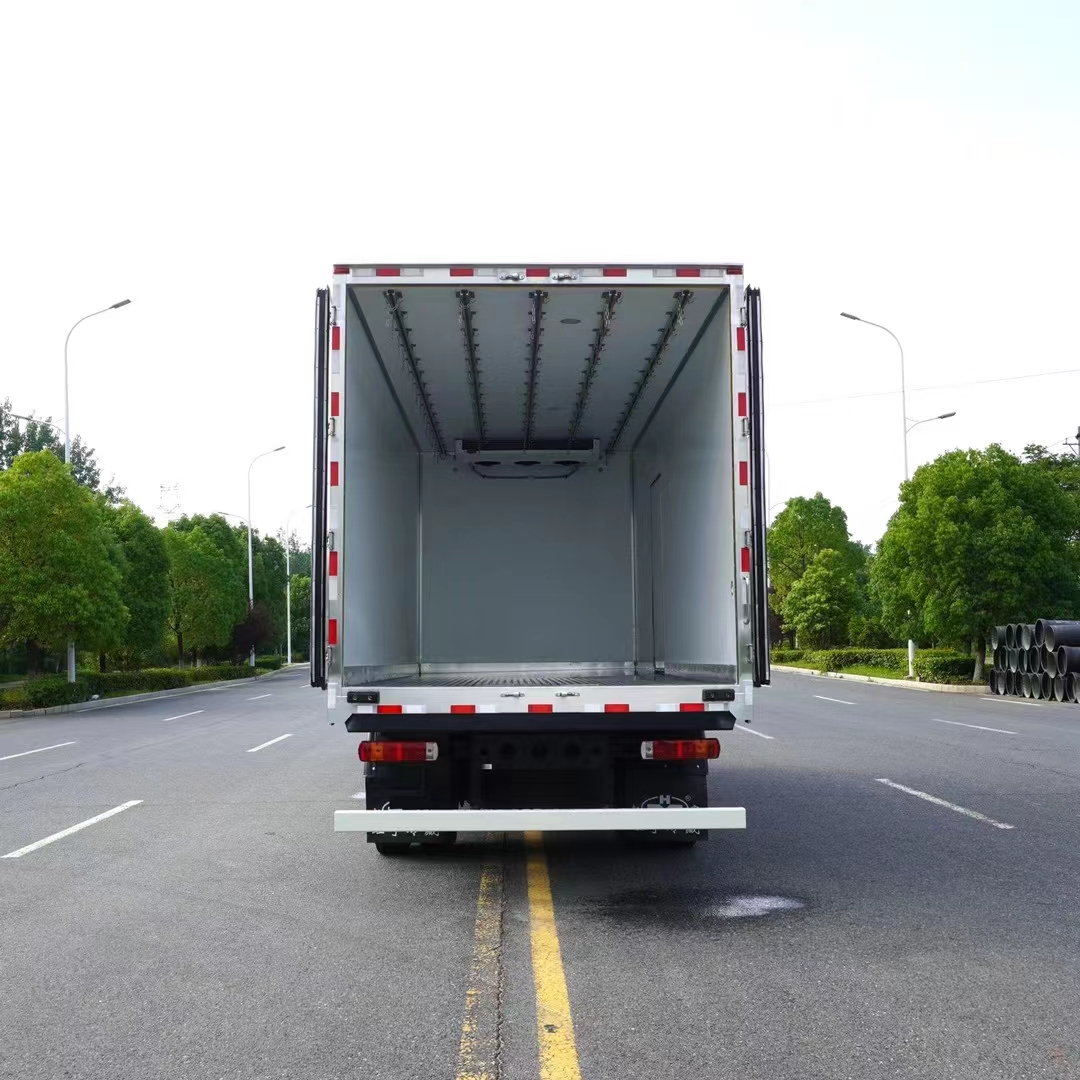 三、选装配置:可选装厢体侧门(单侧门或双开门),可选装铝合金导风槽(导风槽有助于冷气循环,提升制冷效果),可选装厢体顶部加固肉勾滑道(直滑道 或 对接互通式拐弯滑道)。可选装厢体内部采用全面不锈钢材质(海鲜运输必须加装,海水有腐蚀性),可选装280V-380V外接电源(停车熄火后可插电冷机继续制冷工作),可选装温湿度监控记录仪(带打印功能)。